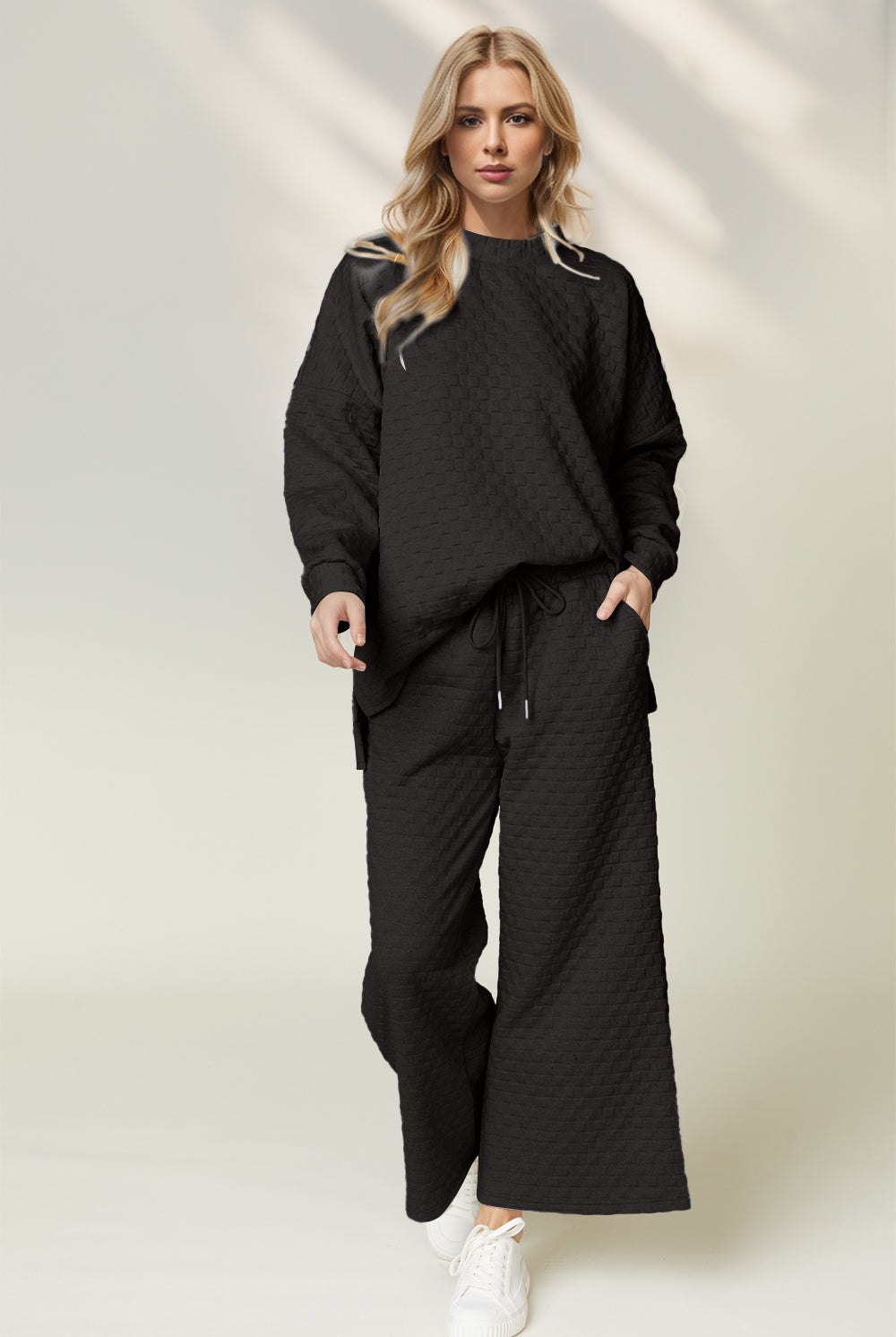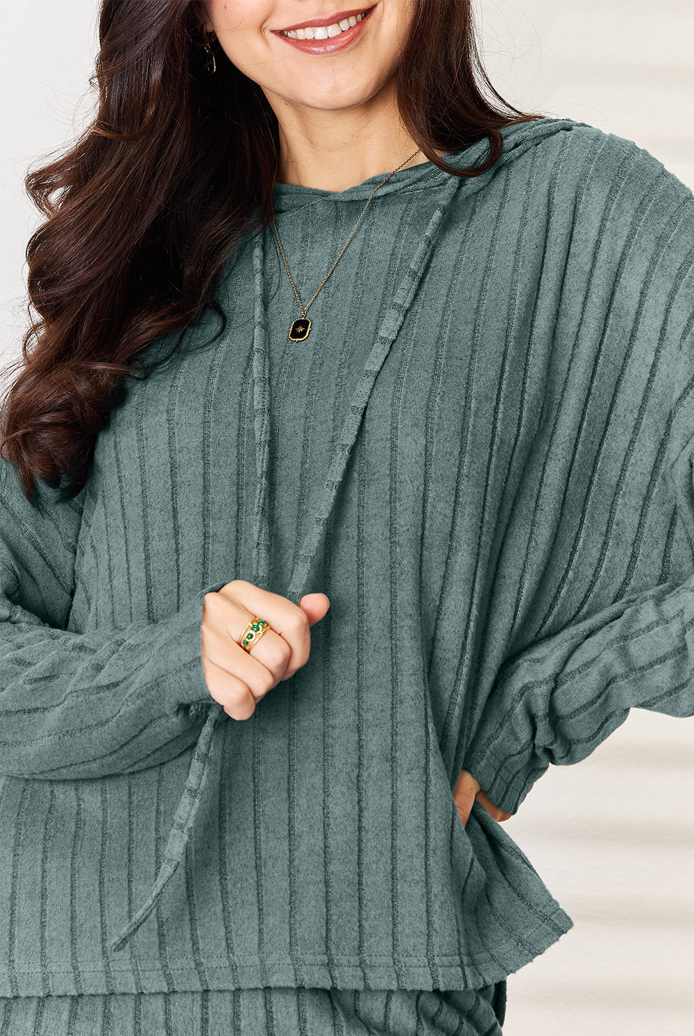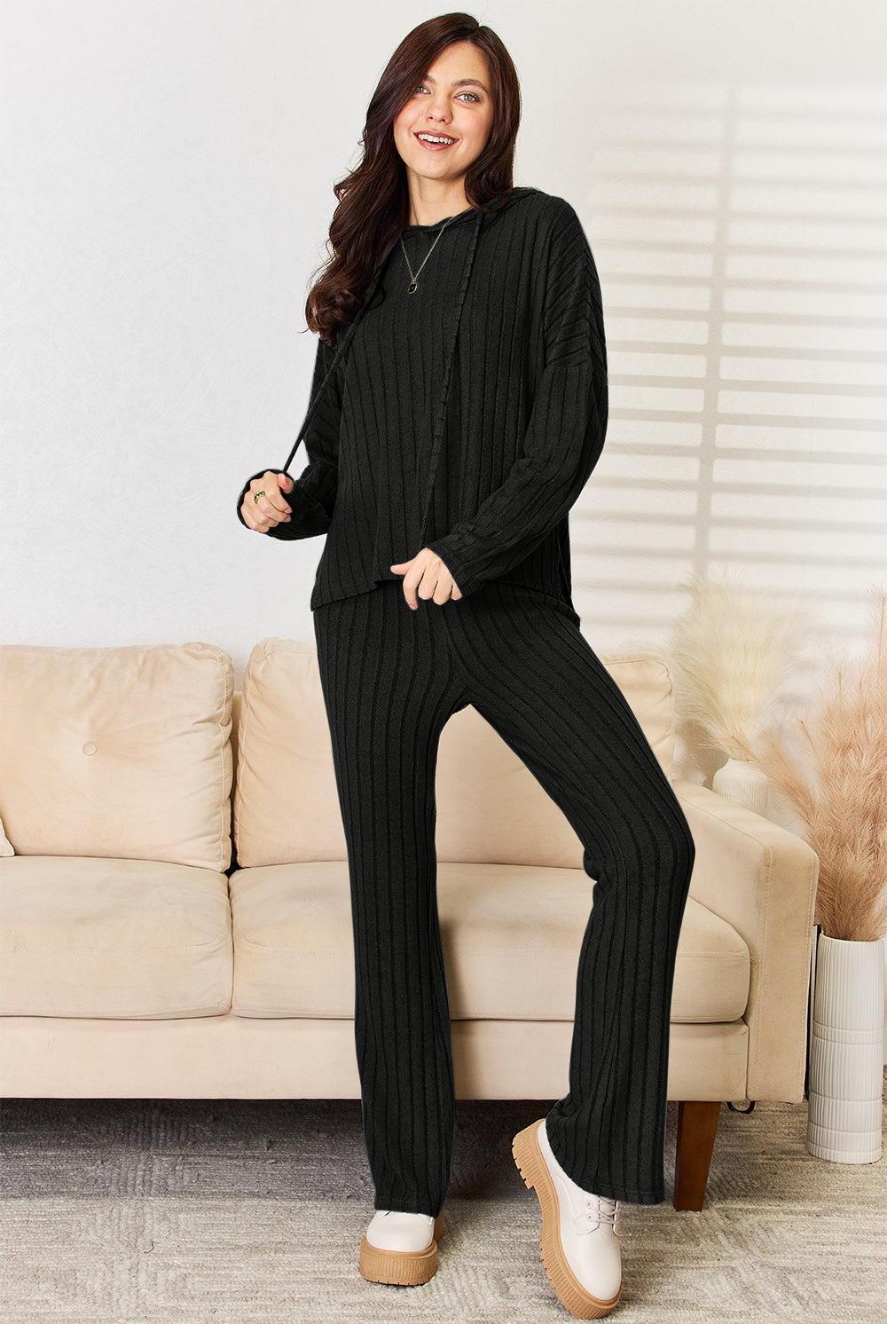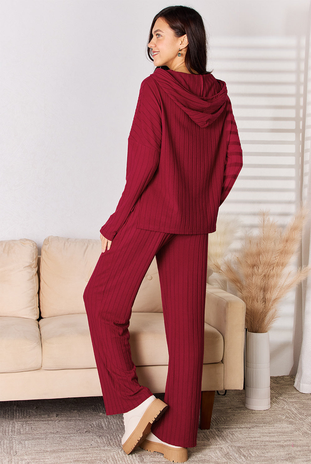 Basic Bae Full Size Ribbed Drawstring Hooded Top and Straight Pants Set