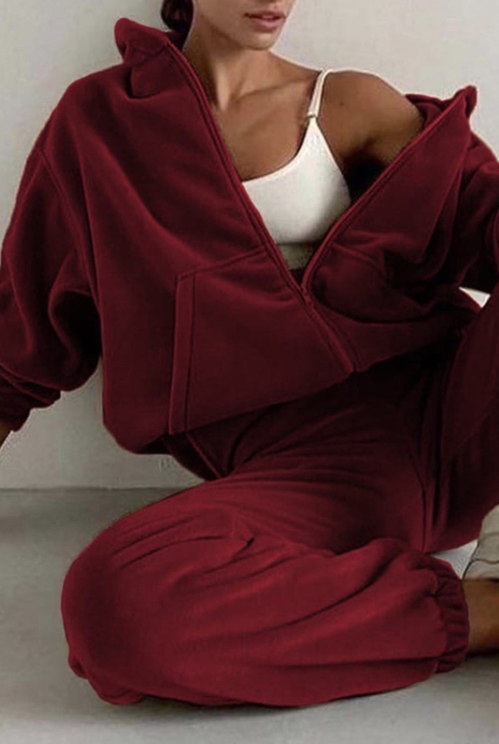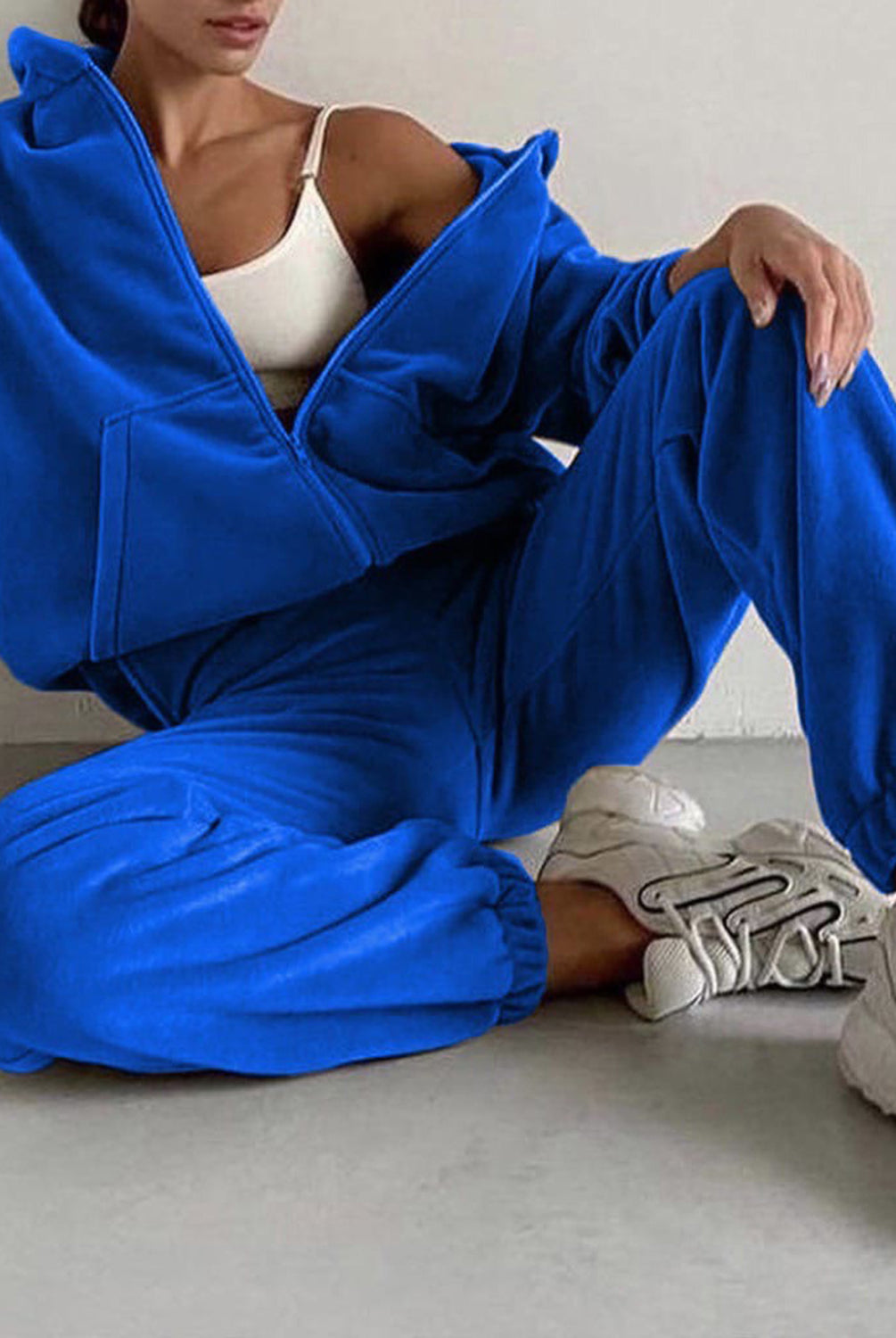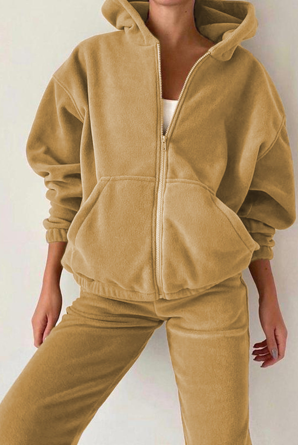 Zip Up Long Sleeve Hoodie and Joggers Set